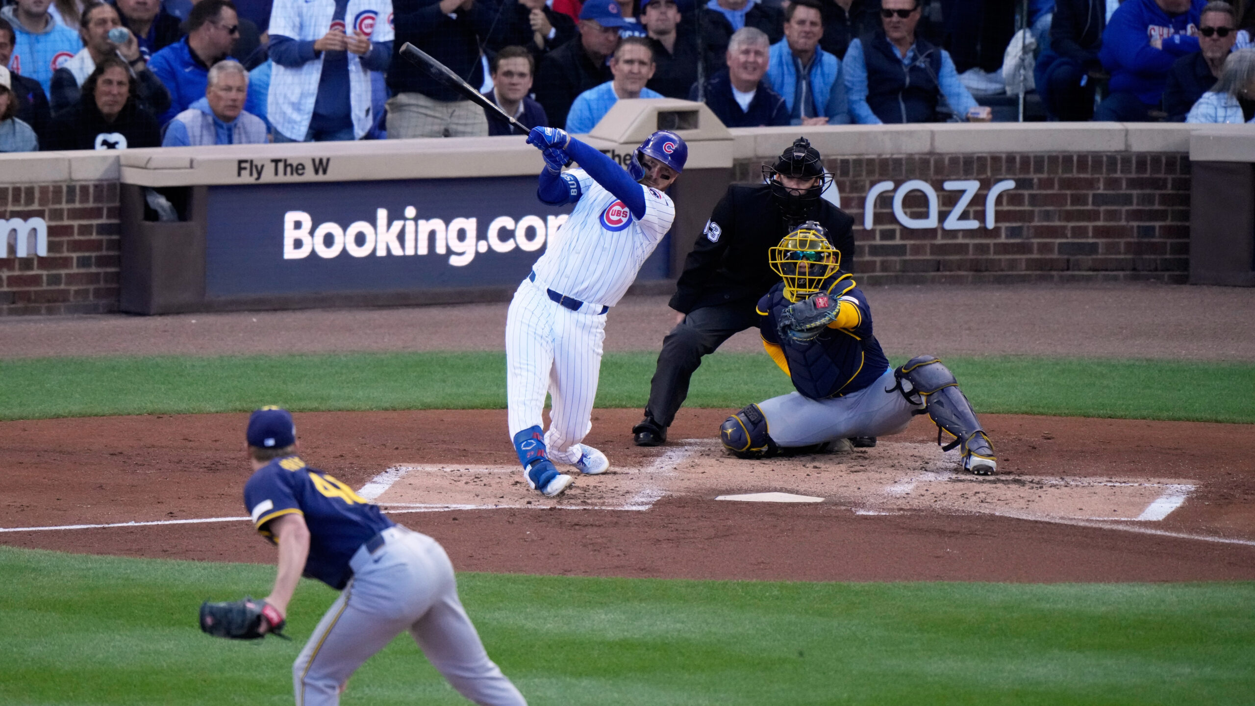 Featured Image: Michael Busch of the Chicago Cubs hits a home run against the Milwaukee Brewers in Game 3 of…